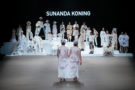 White on white on white.. The dresscode for the second show of the opening night was white. Not for the audience though, for the models. With the idea that everyday is a fresh start nine young designers (Ailene van Elmpt, Johannes Offerhaus, Liesbeth Sterkenburg, Marlou Breuls, Merel van Glabbeek, Sunanda Koning, TRINHBECX, Yoko Maja and Zyanya Keizer) presented their work. A clean slate, a fresh start in which we can write out our dreams, color with hope and shape with belief. Apart from their color palette, which was obviously limited, curator Peter Leferink gave them ‘carte blanche’. This led to very personal stories told by the nine talents brought together by hope, faith and love. Menswear looks covered in text, pleated and lace up womenswear designs, delicate and dreamy designs with beaded/sequins detailing, impressive knitwear pieces (even for little girls), kinky patent leather looks, arty head to toe creations and a couple of twin fashion ensembles. A diversified show concluded by a colorfully dressed choir singing John Lennon’s ‘Imagine’ to a peace sign backdrop. And everything just fell into place.