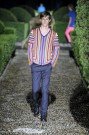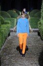 Set in an old park in the hills of Florence, Raf Simons sent out an energetic menswear-collection for Jil Sander thanks to the beautiful bright colors and vibrating stripes. I watched the Web stream – but even without being there the clothes looked crispy and clean and very upbeat. Color was the message, without trying too hard. They worked best when mixed together, like orange pants with a turquoise sweater or a purple coat mixed with pink, turquoise and nightblue. The patterns were surprising too, especially the multi-colored stripes that made a psychedelic effect and will definitely be adapted in the fast fashion-collections. Softer were the flowerprints, that gave a particular touch to the vibrant color-blocking.