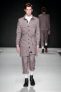Yet like in most menswear shows for fall 2012 we’ve seen so far a big part of the collection was about the suit. They came in shades ranging from lightgrey to black, as did most of the collection. Towards the end, as the music changed from a monotone sound to a more cheerful tune, Hyun added some color (a red checked scarf a pair of pants and a coat).