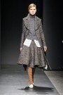 It seems designers are expecting severe temperature reduction by introducing all Glacial Age-proof wardrobes. Especially since these cover the tailored city wardrobes and not performance outdoor gear. Coats seem the main subject of interest this season as well as woolen skirts suits and plaid shifts. And not in featherweight seasonless qualities but in chunky textured versions. ‘Wool is cool!’ definitely seems to be the credo this season. In bespoke luxurious plains as well as washed, bonded and felted versions. Prints, tweeds, color-wovens, plaids, marls, and some with coated and embellished finishings. All showing extreme elegance and a touch of nostalgia and romance. Wool is ideal to play with proportions and volumes, it can drape as well as shape. On the surface it can shows chameleonesque qualities, and can be sculpted in any volume or proportion. Ideal for the minute excises in tailoring that most designers are into.