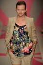 When Donna Karan launched DKNY in 1989, its streetwise, fast-fashion ideas were a welcome innovation. Now, 20 years later, it’s the grand mother of secondary collections. Yet DKNY’s is still a New York state of mind. Named City in Bloom, Karan’s collection played neutrals off a host of florals, including charming little peonies and splashy floral and -graffiti prints. There were endless propositions of the suit: boyfriend jackets paired with little cuffed shorts or slouchy pants—even a silk bomber with matching sweatpants. Biker shorts were worn under every dress and short.