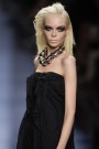 Eye-catching accessories were the Blumarine jewelry that looked like children’s jewelry, some magnificent hair accessories at Chanel, a belt-like bracelet at Blugirl, an ant-necklace at Dsquared, and some pearl bracelets and plastic flower corsages at Galliano.