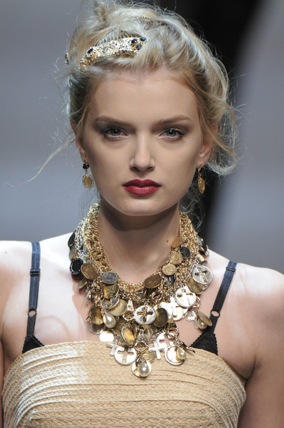 Next summer large necklaces (and wearing multiple ones) seem to be the it-item for women. These necklaces could be seen at fashion shows of Vivienne Westwood, Bottega Veneta, Barbara Bui, Byblos, Oscar de la Renta, Dolce & Gabbana, Donna Karan, Badgley Mischka and Moschino.