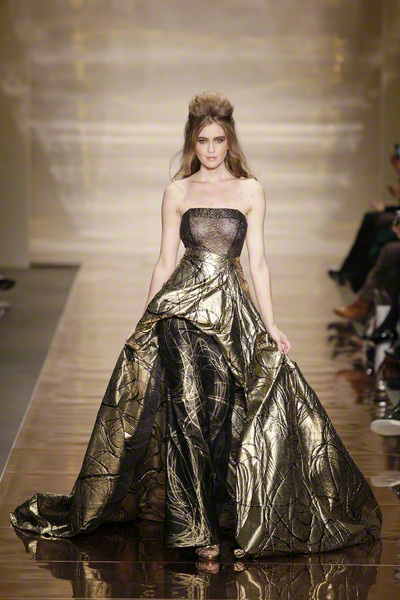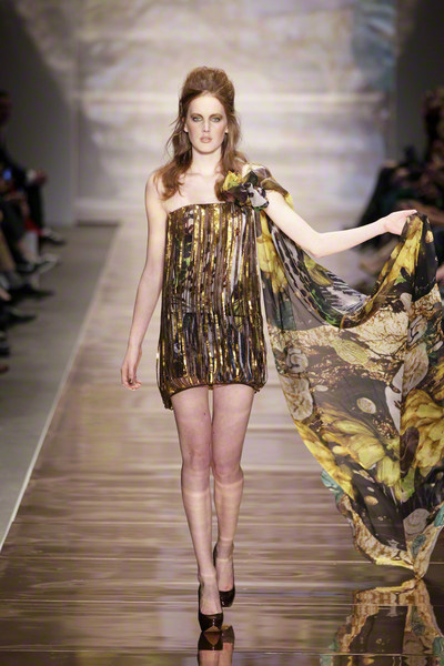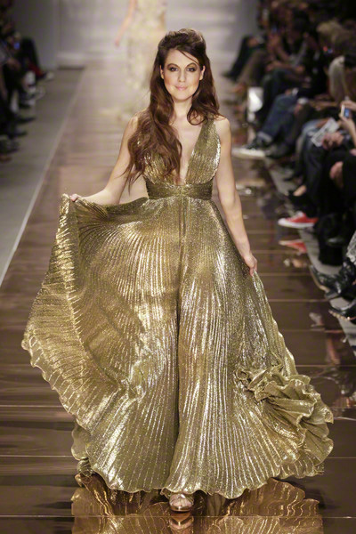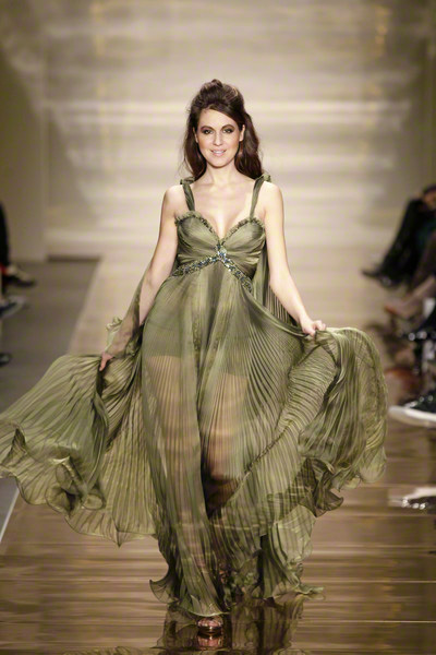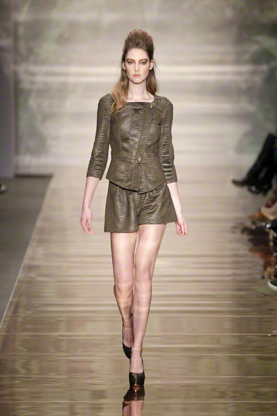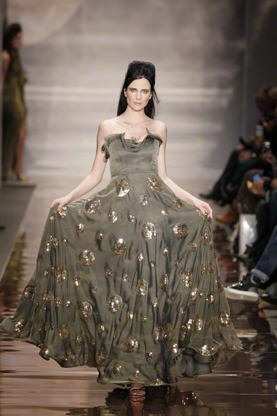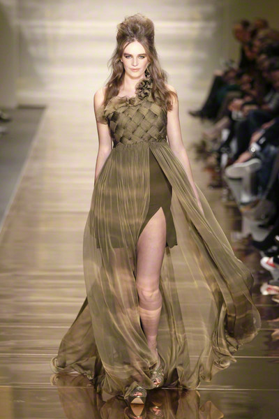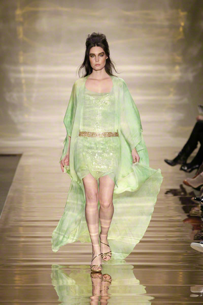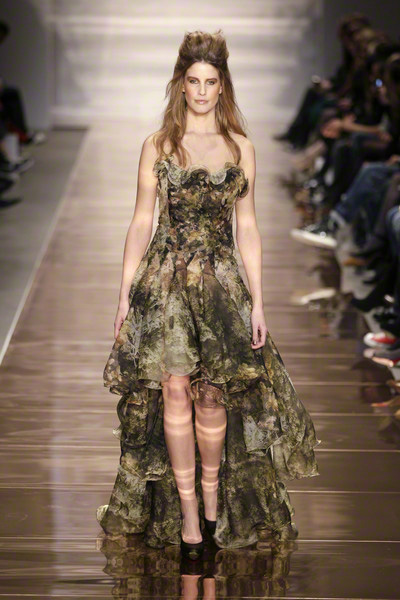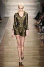 His glamorous pieceful warior woman (the name of the collection) changed her wardrobe from casual chic to lounge to evening. She wore army green shorts combined with elegant jackets, shiny, feminine cocktail dresses and chic evening gowns.