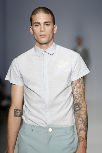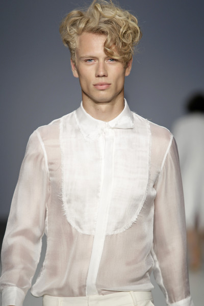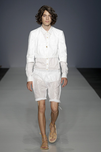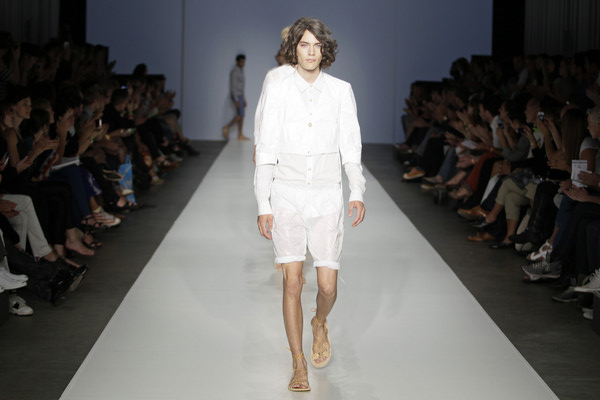Yeu designed round shoulders, slightly puffy ¾ sleeves and little pleats in unexpected places. The clothes were made out of lightweight cottons, summer wools, silks and hi-tech fabrics. There were both casual and formal pieces in the collection.