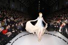 The last two dresses of Jan Taminiau’s show both had big veils. His show ended with his muse wearing an ivory colored wedding dress.