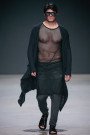 When Daniel Wahlberg and Richard Sjöblom from Stockholm started their own fashion brand Army of Me back in 2008 their mission was clear and simple; bringing something different to the fashion table. Combining classic designs from the west with avant garde fashion from the east’, has been the label’s motto ever since. At today’s show the two bearded designers didn’t fail to deliver. An exotic army of tough and toned models rocking black leather boots (or just sandals finished with heavy black duck tape all around when they ran out of boots?) and futuristic sunglasses strutted the afternoon runway show wearing anything but typical Dutch menswear. Long tops (fully buttoned shirts, slightly sheer tanktops, denim zipped jackets, cardigans and leather jackets) and a monochrome color palette seemed to be their winning formula. Black eye make-up, harnesses and leather gloves added to the toughness of the models as the designerduo left no chance untapped to focus on the models’ physique. Completely in style, dressed like their brand’s ideal customers, they took their bow.
