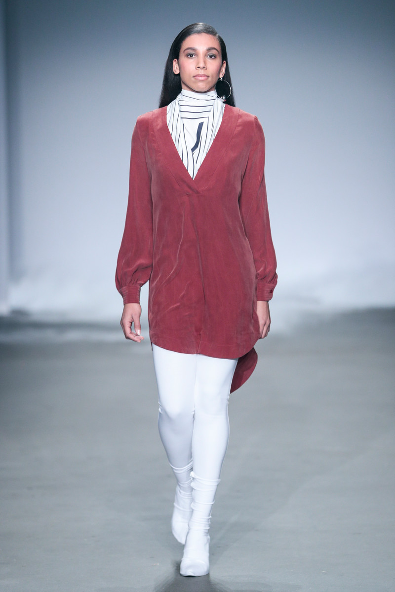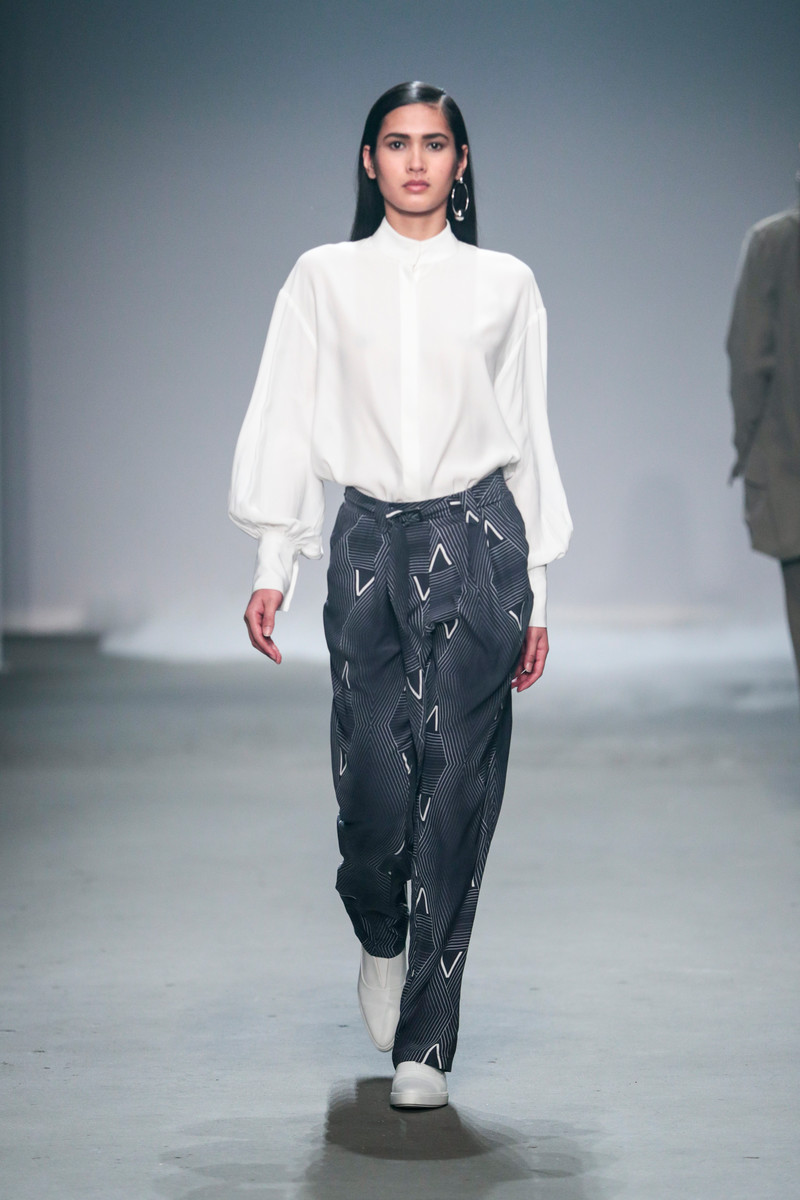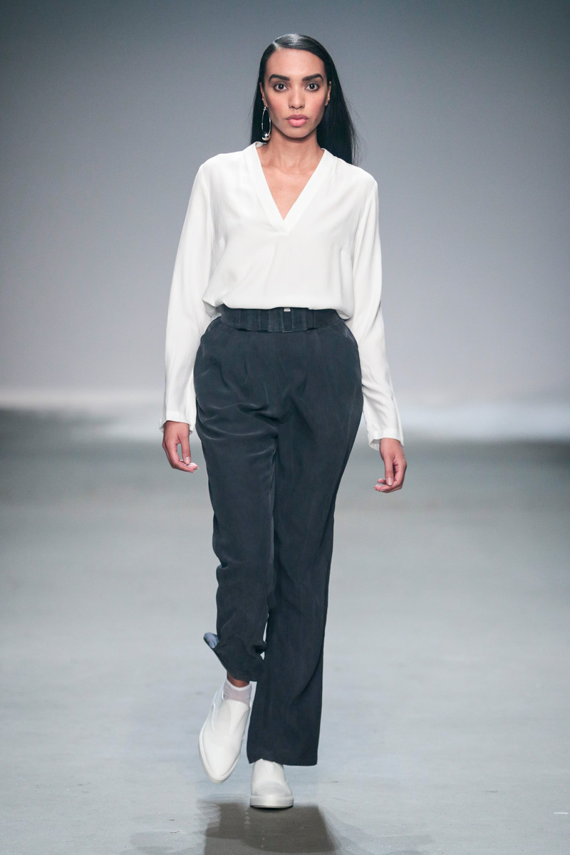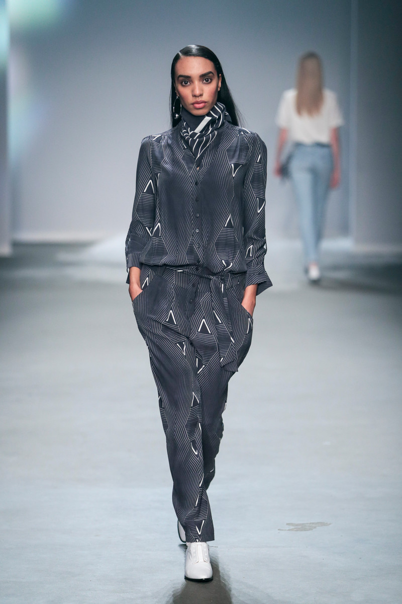 It was Astrid Elisees first time showing at Mercedes-Benz Fashion Week Amsterdam but the Dutch designer, who previously lived in and worked from Bali, didn’t fail to impress. She presented a collection divided into three categories (key, classics and limited). The same way someone would divide his/her own wardrobe. A silk jumpsuit belonged in the Key-item category, while a boyfriend T-shirt would be a classic and one of the limited pieces would have been a graphic printed suit. Elisees designs are all about wearability and sustainability, so the silhouette is quite loose and the sustainable silk she uses is of a high quality and sand washed. The overall feeling of the collection was classic and very feminine. Designs most of the Dutch women would feel comfortable and beautiful in, so this won`t be the last thing you`ve heard from Astrid Elisee.