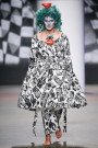 If there’s anyone who knows how to throw a decent catwalk party, it’s Bas Kosters. Year after year he gets the fashion crowd going by just letting music, make-up, backdrop and models in his designs work together. Today was no exception. Bas himself sat on a large block which stood on the catwalk. In Lotus position, like a fashion Budhha he looked at the fashion crowd. As he started spinning, yep, spinning, we’re talking Bas Kosters here, Valentijn de Hingh, opened the show. Naturally dressed in a bright colored, larger than life creation. As the show went on all typical ingredients came along. Tulle, bright colors, structured shapes, glitters everywhere, make-up overdone. Oh and let’s not forget the customized strollers, supermarket carts, dolls and Bas’ face as a backdrop. The music was a little less party, a little more spiritual. Incense and flowers spreading the love during the finale added up to that relaxation factor. An awakening and enlightening start of the weekend. Thanks for a good time, Bas!