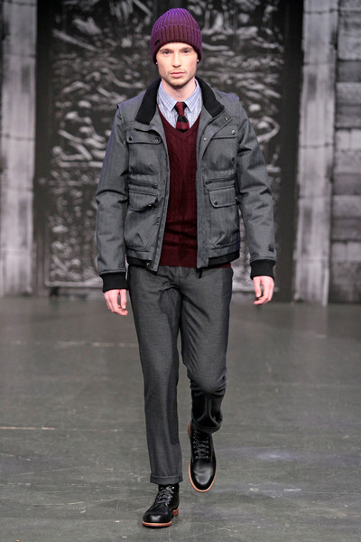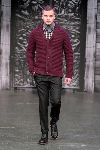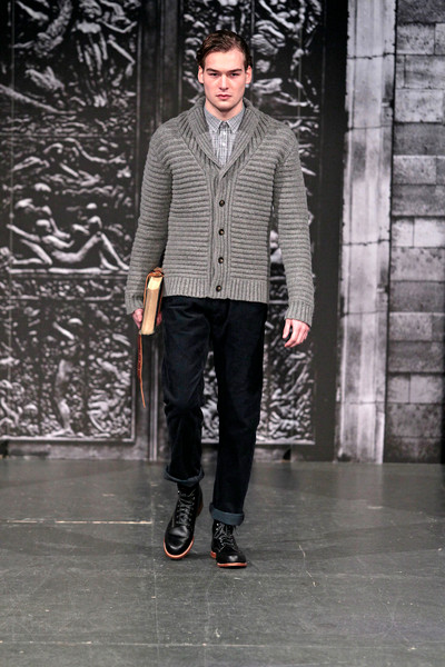 His key items for fall turned out to be his field jacket, checked jersey cardigan and a woolen caban. A selection of gorgeous knits was added to the mix as well. And in stead of using a lot of black Dieter introduced shades of dark blue and grey combined with seventies shades like ochre, burgundy and navy blue.