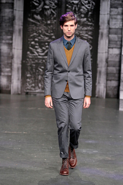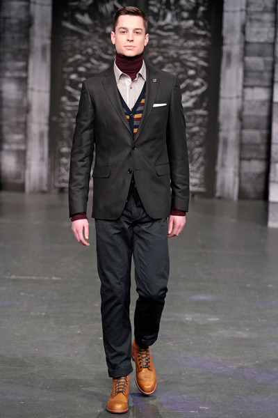Head designer Dieter de Cock translated the activism of the student revolutions by expanding his range of suits (in tweed, woolen, corduroy). He showed how to wear those suits in combination with wax coats and fluff jackets. He also came up with casual chinos and corduroy 5-pockets worn with a shirt and a jacket.