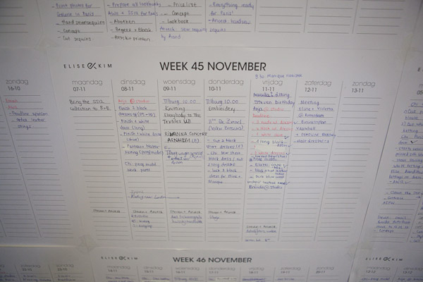 “The collection is already finished, so we can be quite relaxed. I always make sure I’m right on schedule with my work; I am a real planner. Besides, I got a little help too from one intern, and two seamstresses.”