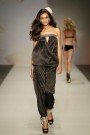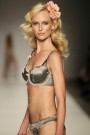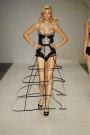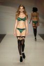 The first few looks were soft, romantic; lots of nudes, dreamy shades and flowers. Lace little sleeves, satin bows and richly styled backs completed the looks. After that the models wore some Art Work pieces with more color (wintery green) and materials like satin, lace and veil. The Shapewear collection was made out of state of the art fabrics and high tech designs. It had soft pink and black shades. The Glamour serie had feminine shapes and high waisted pants. The show was ended by a model wearing a body with strass beads and the solid contours of a skirt. Not really fashion, but sure fun to watch!