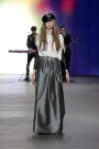 You don’t have to undress to be sexy was Jan Boelos message tonight. And indeed, he didn’t show a lot of skin. There was no need to. His male and female models rocked his autumn designs nonetheless. Walking the show on flat boots, fully dressed; how surprisingly comfortable! Long knitted skirts with loose cardigans and leather lace up gloves for the girls. Tailored jackets, leather pants and dito gloves for the lads. A series of strong metallic pieces, heavy leather, some linnen even as well as a bit of black sheerness. No full volume rock music this time; a live band beautifully performed two songs on stage. The models walked much slower (than we’re used to at Boelo) too, but there was just as much energy in the show area (those front row celeb guests might have something to do with that too). A big applause at the end for the Groningen-based designer who is doing so well. This, more commercial collection, will sure score too once it hits the stores (including Boelos new selling point Azurro in Amsterdam) in half a year.