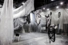 Ever experienced a massive storm? Well at Jef Montes you were in for a treat! No straight up catwalk show here, the young designer set up a fashion experience. An experience for himself as well as for the audience. Jef Montes decided to create the opening outfit of his brand new collection Tormenta (storm) in front of his guests. A chance for us to take a look inside his design studio, see how it’s done. Not your average workplace we tell you! Like a true storm Jef Montes raged around his experience space using all different types of chemicals to create his design. We got to witness all design phases; epoxy at first and finally black ink to cover it all; the dress, the space and himself. The result? Some fascinating designs shown against an eerie backdrop representing Jef Montes’ thought on life in the here and now as well as the hereafter. We’re blown away (by the storm). Quite the experience.