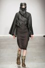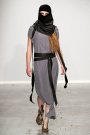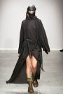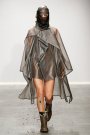 Their faces were covered by the same material as the rain capes were made of. Dresses were wrapped around the models’ bodies with thick ribbons. Glass like materials on a long top represented water drops and gave the collection it’s elegant touch.