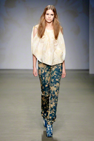 The British designer Laura Smith focused at vintage uniforms and a hippie-like beachstyle. Shirts, pants and fluid skirts form the basis of the collection. The style is minimal with sober colors and brick-red. Texture is more important than color.