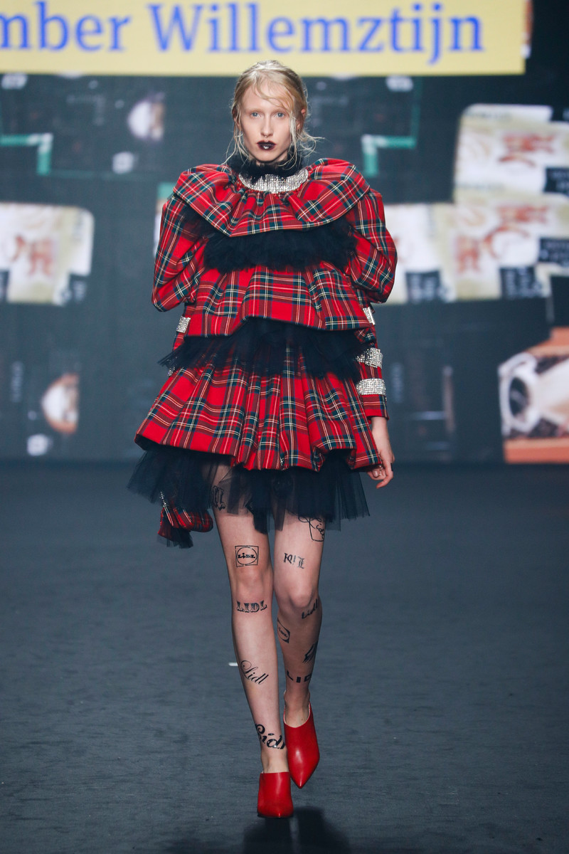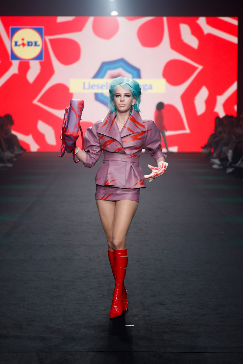 Five young Dutch designers from different fashion academies in the Netherlands participated in the show. Those students were Mirte Luijmes – HKU Hogeschool voor de kunsten Utrecht, Heidi Dai – WDKA Willem de Kooning Rotterdam, Lieselot Elzinga -Gerrit Rietveld Academie Amsterdam, Amber Willemztijn – Artez University of Artz Arnhem and Laura Snijders – KABK Koninklijke Academie voor beeldende kunsten Den Haag. Each student presented one of her designs in between the Lidl looks.