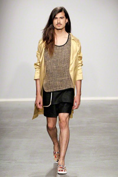Melissa started with six sportswear inspired menswear outfits. She showed sporty shorts with visible pockets, tank tops in different variations (linen, striped and shiny) and two chic jackets. A small but well tailored selection. We would love to see more!