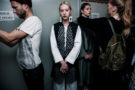 The handwritten, scribbled invite already gave us a big hint; Show Room Room Show wasn’t going to be just another fashion show. Nope. Camiel Fortgens, Barbara Langendijk, Karin Vlug & Lisa Konno and Schueller de Waal, six young Dutch designers were about to switch things up a bit. Away from the glitter, glamour and fast speed fashion rhythm. As we arrived at their show venue, a former monastery, on Tuesday night we were welcomed in what seemed like a large living room. Old chairs, couches, pillows and bowls filled with crisps and peanuts all around. Disposable camera’s on the floor for the audience to use. House party meets fashion presentation; an intimate set-up meant to lead to surprising meet-ups and conversations, besides just showing the new collections. And just that really happened. An aspiring styliste from Maastricht sitting next to me told me she drove five hours just to witness this fashion gathering, her first show, hoping to be surprised. Boy was she in for a treat. After Camiel Fortgens models paraded in their sand colored layered and neutral menswear looks to hip hop music, Barbara Langendijk had dancer Yevgeniia Lavrenchuck taking the stage, talking to us about purple being her favorite color and then showing us just how comfortable her body made of banana leaves was. Karin Vlug and Lisa Konno pulled a Viktor & Rolf, dressing their frizzy haired models on the runway. The girls were dressed in cool, quite sober fashion pieces, all variations to the square shirt, in white coton and denim with colorful buttons as a playful touch. Then Schueller de Waal turned the room show into an unforgettable night with his fashion sketch. He had Gaga herself (played by Merante in Wonderland) walking into the room searching some clothes in which she could look ‘normal’ again. With the help of a stylist (played by Eva Bartels) she hilariously tried several pieces on eventually leaving the room in a neon garbage dress. Fashion combined with a fun bit of (inter)acting. A brilliant ending of a warm Tuesday night in the city center. On to the next room show. We want more!