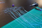 Finding the tiniest beads in the world is one thing, attaching them turned out to be one hell of a job. Elise: “I kind of underestimated the amount of work that goes into creating a dress covered in beads. Each dress takes up around two till three hundred hours to make. Can you believe we’ve been adding around 1,5 kilometers of beads?! At the office me and my intern make the best out of it and enjoy some music, tea and cookies while we’re working, but after hours and hours of threading it gets pretty dull. Yet I really wanted to show a lot of handwork and it is turning out very beautiful.”