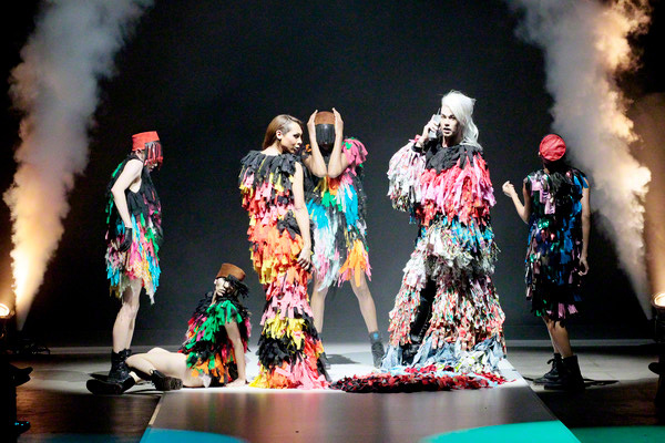 On the first night of Amsterdam Fashion Week Bas Kosters blew us away with his spectacular show and performance. He started off playbacking (into an old telephone) to his own song, surrounded by five crazy dancers. Then his show started.