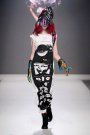 Fashion wise it was a collection as crazy as ever. Telephone prints, letter prints, fluffly and fringed items came by. Bas designed printed leggings, long (dress-y) hoodies, structured pants and belly revealing tops. A black dress which had his face printed on it looked stunning due to the color combinations. The other prints just looked joyful and fun.