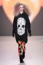 She already showed once before at the Amsterdam Fashion Week, during the 2008 Lichting- show, and now she’s up for the second time. Her current collection is called Wickedland, inspired by soft toys like dolls and stuffed animals and used these playful elements in her designs. Like marching-girls wearing bunny ears on their caps or an alpaca dress revised with thick woolen ruffles, inspired by a Spanish doll she once got. Not wanting the collection being too sweet, she added some leather details to give it some edge. There was even a small surprise during the show: a little kid walked down the runway in the cutest little knitwear suit with little bunny ears on his head.