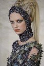 The dresses are comprised of a duel between two different forms and a duel between different worlds. The antique Chinese fabric is used for the most dominant, sculptural form and is placed in contrast with a more classical silhouette. The dialogue also takes places between the almost organic substance of the heavily embroidered fabric with paillettes and the sensitivity of the antique hand woven fabric.