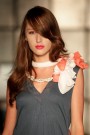 Many of the outfits were finished off by nice accessories. Necklaces made out of fabric for instance, but also some great clutches.