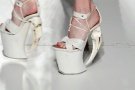 Besides the floral theme and the scales there were more nature-inspired influences in his designs. A black top was decorated by feathers, a light bodysuit was made out of white fur and bones and skulls were used for accessories (necklace and clutches) and those towering high shoes.