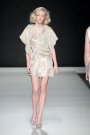 During his fashion show debut in Amsterdam he showed summer dresses in off white and pretty pastels. Short playful dresses were followed by long elegant gowns. They all had fun and feminine details like asymmetry, ribbons, bows and twisted fabrics. The collection breathed summer, especially with the light yellow and green eye make-up.