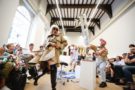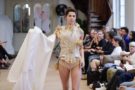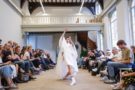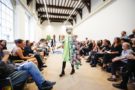 The handwritten, scribbled invite already gave us a big hint; Show Room Room Show wasn’t going to be just another fashion show. Nope. Camiel Fortgens, Barbara Langendijk, Karin Vlug & Lisa Konno and Schueller de Waal, six young Dutch designers were about to switch things up a bit. Away from the glitter, glamour and fast speed fashion rhythm. As we arrived at their show venue, a former monastery, on Tuesday night we were welcomed in what seemed like a large living room. Old chairs, couches, pillows and bowls filled with crisps and peanuts all around. Disposable camera’s on the floor for the audience to use. House party meets fashion presentation; an intimate set-up meant to lead to surprising meet-ups and conversations, besides just showing the new collections. And just that really happened. An aspiring styliste from Maastricht sitting next to me told me she drove five hours just to witness this fashion gathering, her first show, hoping to be surprised. Boy was she in for a treat. After Camiel Fortgens models paraded in their sand colored layered and neutral menswear looks to hip hop music, Barbara Langendijk had dancer Yevgeniia Lavrenchuck taking the stage, talking to us about purple being her favorite color and then showing us just how comfortable her body made of banana leaves was. Karin Vlug and Lisa Konno pulled a Viktor & Rolf, dressing their frizzy haired models on the runway. The girls were dressed in cool, quite sober fashion pieces, all variations to the square shirt, in white coton and denim with colorful buttons as a playful touch. Then Schueller de Waal turned the room show into an unforgettable night with his fashion sketch. He had Gaga herself (played by Merante in Wonderland) walking into the room searching some clothes in which she could look ‘normal’ again. With the help of a stylist (played by Eva Bartels) she hilariously tried several pieces on eventually leaving the room in a neon garbage dress. Fashion combined with a fun bit of (inter)acting. A brilliant ending of a warm Tuesday night in the city center. On to the next room show. We want more!