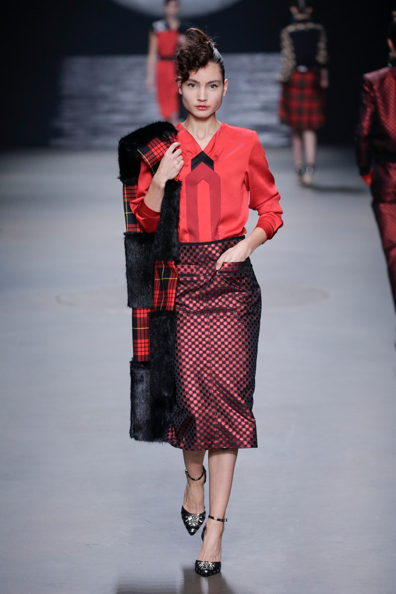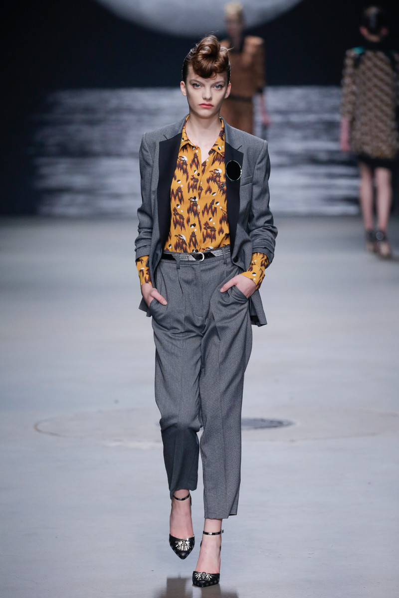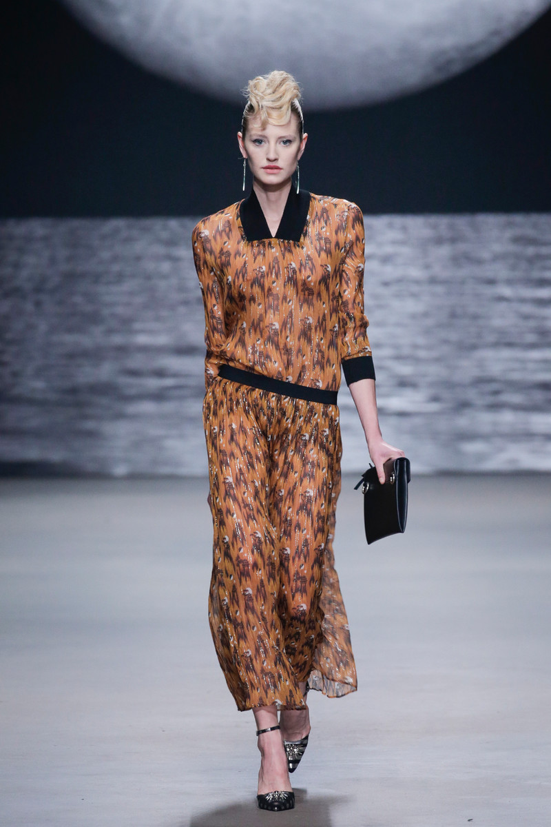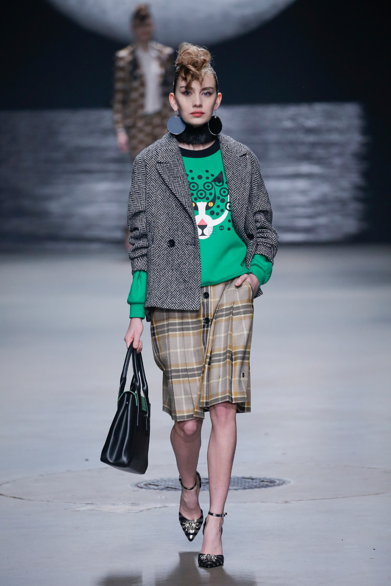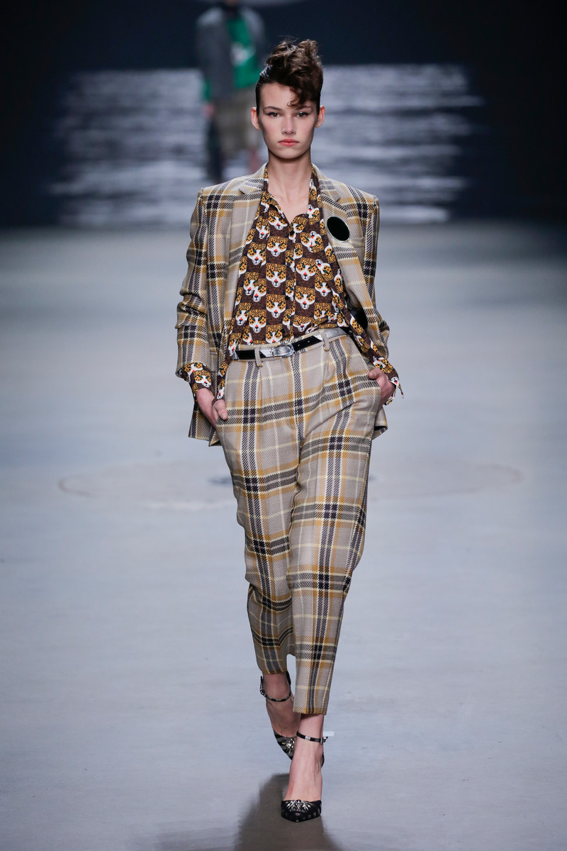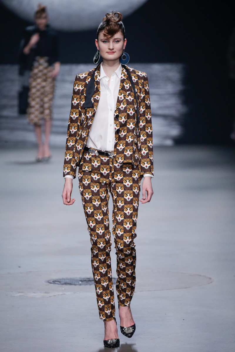 Leave it up to Truus and Riet Spijkers to take care of our Saturday night entertainment. Once again they delighted us with yet another on point SIS by Spijkers en Spijkers collection. Discover Moon Tan, inspired by the moon and a trip to Shanghai the Arnhem based designers made earlier this year. Their muse: Ching Shih, a pirate and a princess of the Chinese Sea in the 18th century. Think: lots of color, graphic cuts and theme-inspired prints like an ikat pattern designed around Chinese landscapes and cube-like panters. Suits in large woolen tartan prints and lurex jacquards were followed by dresses made of extra soft crêpe de Chine, wool and satin. Even jeans and sweatshirts made their appearance. Finished off with XL mirror earrings, pendants, brooches, reflecting the catalk lights like the full moon. Creating ensembles both elegant and comfortable, suitable for both office and happy hours.