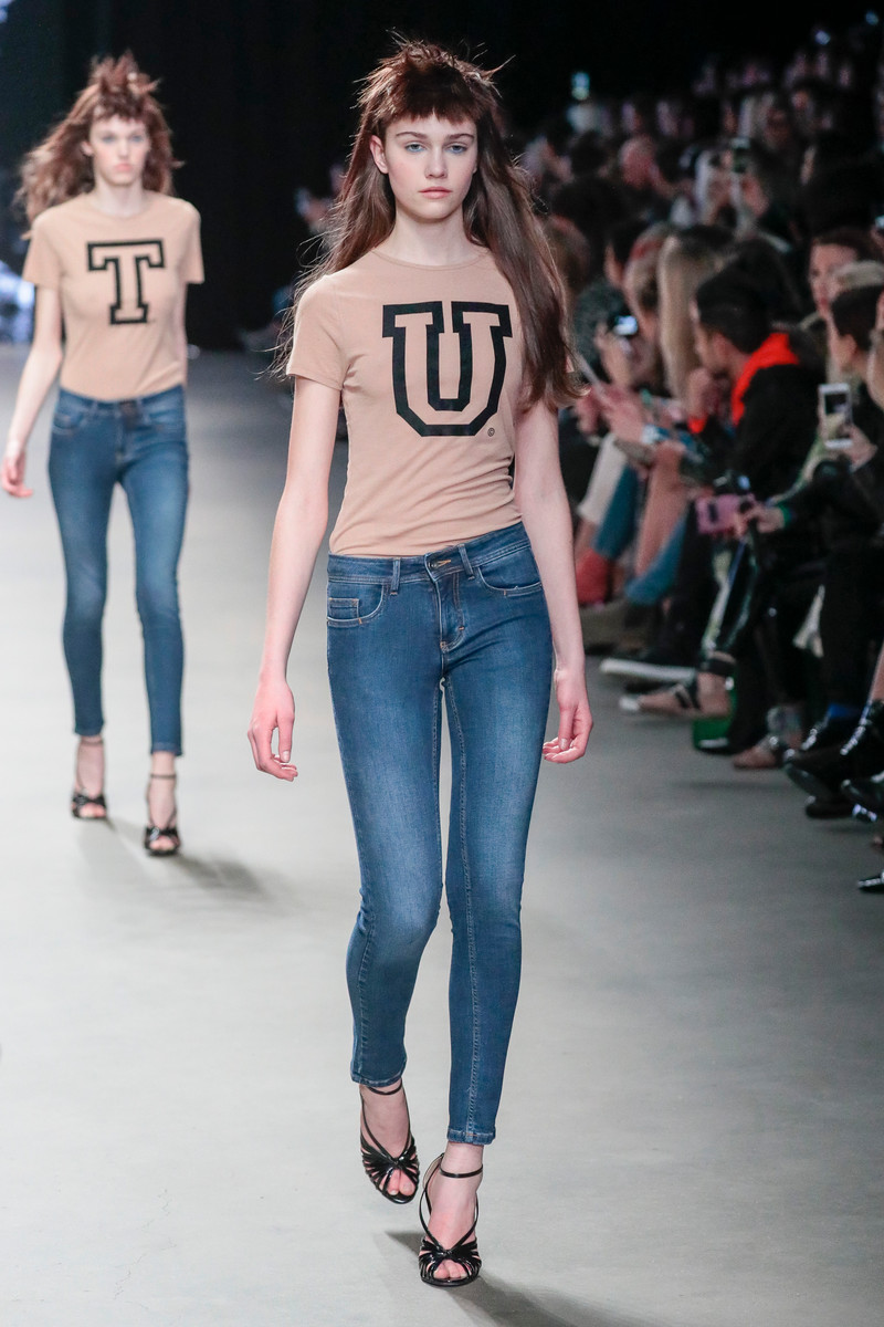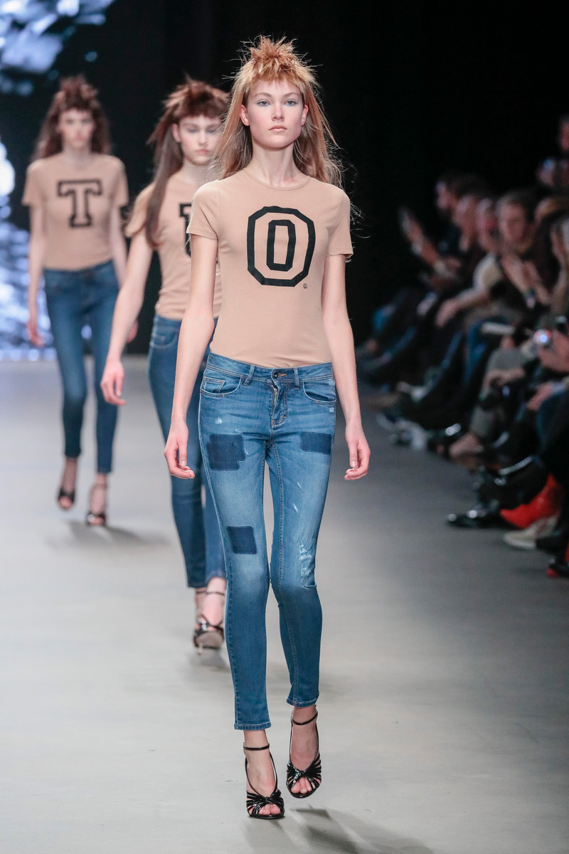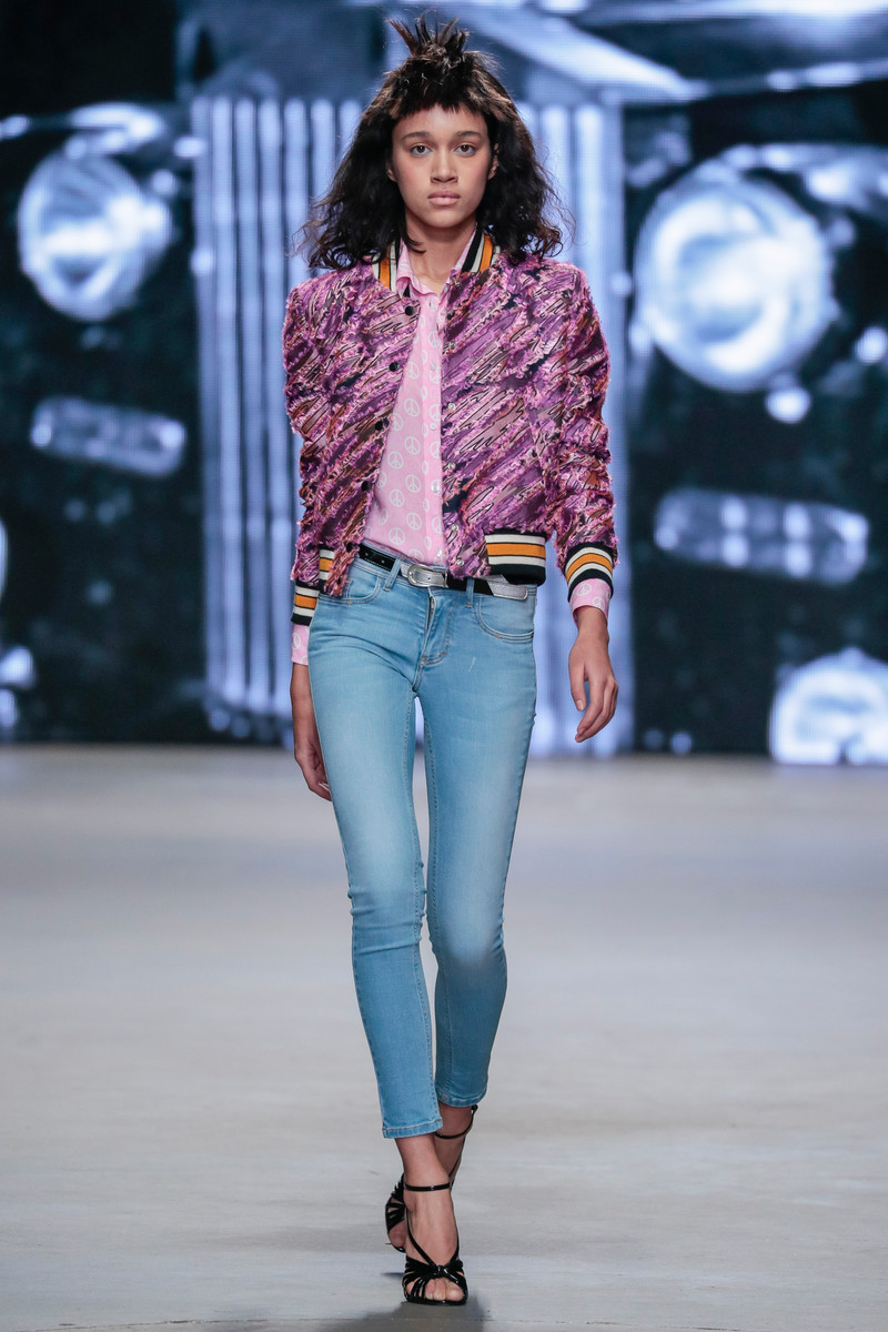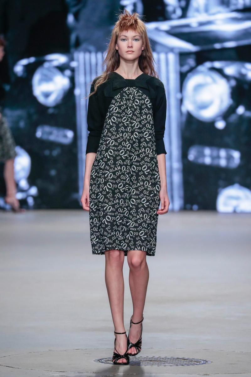 For fall/winter 2017/2018 the Spijkers en Spijkers sisters were inspired by the images of and stories about Studio 54, a big New York nightclub that was at it’s peek around the seventies and has been a source of inspiration for many designers. This lead to a great diversity of both color and materials used on signature Spijkers en Spijkers pieces like graphic dresses, blouses, skirts and cardigans. Lurex Ajour knits with stripes, jacquards with flame patterns and wild graffiti prints as well as pop art prints with the words ‘Revolution’ and ‘Love’ gave the designs a certain seventies feeling. Brand new were the jeans that turned out to be part of label’s latest denim collection. A complete line up of models dressed in a nude T-shirt (spelling the words FITIN&STANDOUT) and one of the new denim jeans made sure this SPIJKERS launch didn’t get unnoticed. And well.. they nailed it. But those audience members planning on packing up after that denim finale had to have some more patience, since the show wasn’t quite over yet… In fact, they were in for a treat as the complete Gashouder was turned into one gigantic pop-up mansion party (a preview of the L.A. inspired DILLIH party scheduled for the 4th of March). Think: chandeliers, dancers, balloons, a pop-up bar and Joost van Bellen in his DJ booth spinning some disco classics. As all show attendees were invited onto the catwalk -turned-dancefloor the party could really get started. And like all those epic Saturday nights at Studio 54 decades ago it would become a night to remember…