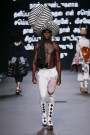 A show, unlike any other we have ever witnessed, that was Sistaaz of the Castle by photographer Jan Hoek & fashion designer Duran Lantink. Their project is based around the colorful looks of transgender sex workers on the streets of Capetown. Today a collection based on those fashionable types and their ability to make the most outspoken looks out of anything and everything they can find was presented. A photo exhibition with this very same theme can be visited at the Foam photography in Amsterdam, including portraits of six girls Coco (25), Cleopatra (23), Sulaiga (30), Gabby (29), Flavinia (33) and Joan Collins (57). Pictures that eventually formed the lookbook images for Duran Lantink’s collection and were projected onto today’s backdrop. During the show the audience got to know a little bit more about their lives, their dreams and the way they hope to be perceived by others. Six models were put up on a driving backdrop, each portraying one of the six transgender sex workers. They were fully dressep up and had gotten completely into character. In between different models showed Duran’s latest wearable designs as an explosive finally followed. A spectacle almost impossible to describe in words. Oh well, just check out the images and see it for yourself.