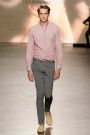 Inspired by the prewar Japan and traditional Japanese music, Min‘yō (the name of the collection) representing the idea of continuation, Sjaak Hullekes presented a very well tailored, wearable and cohesive collection. To the sounds of a live cello in the corner of the catwalk (yet another form of live music this week) the male models appeared. They wore small fitting pleated pants, elegant shirts, non-lined safari jackets and handmade nature-inspired loafers. And Sjaak’s favorite piece, a terracotta shaded safari jacket with a collar and pockets in a contrasting fabric, indeed was one of the showstoppers of the collection.
