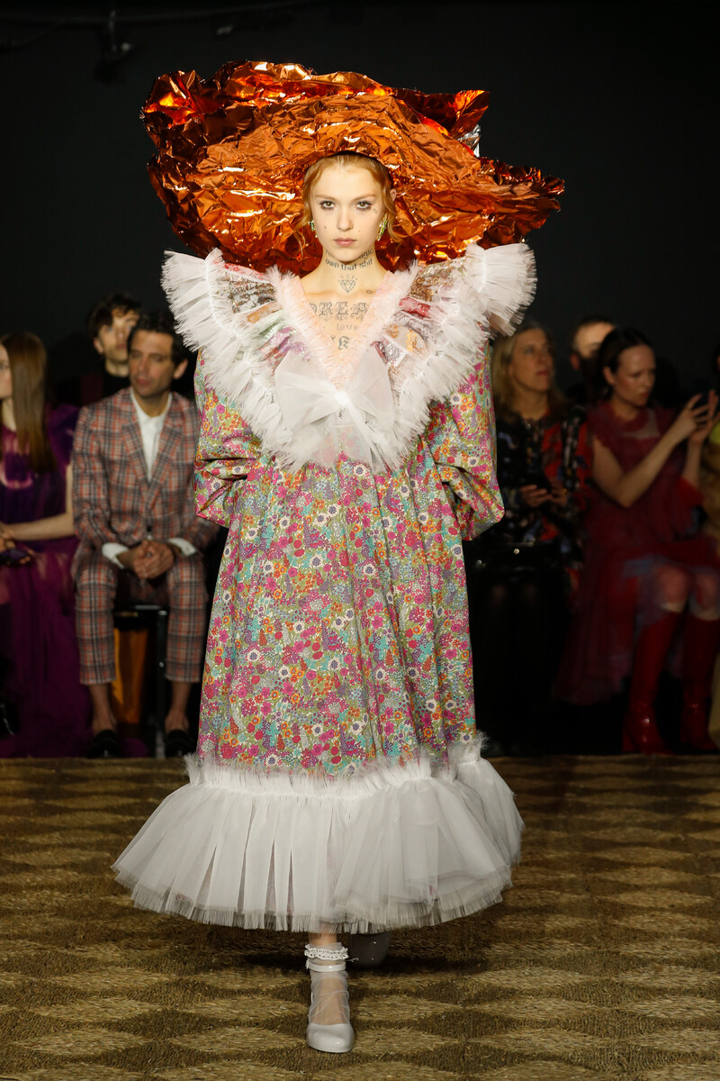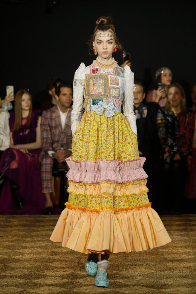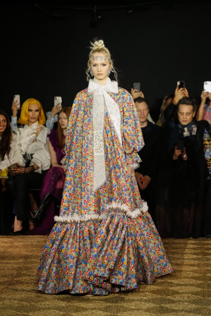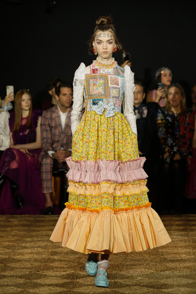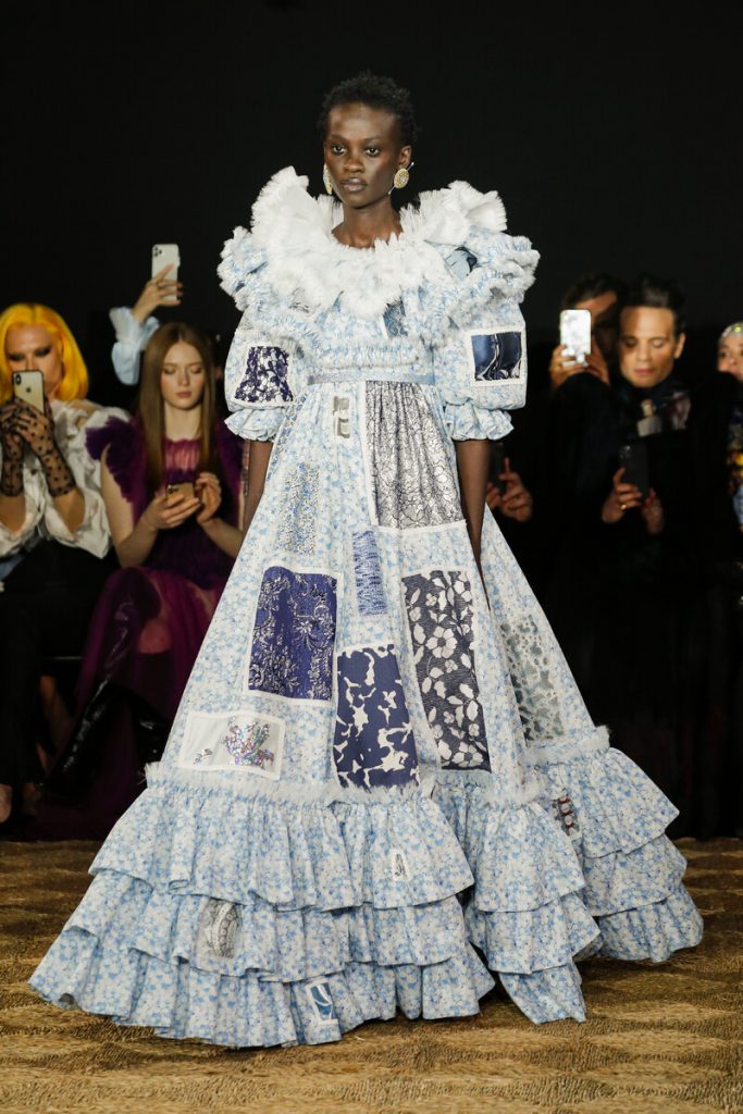 Inspired by the Holly Hobbie cartoon and Laura Ingalls Wilder’s Little House on the Prairie Viktor & Rolf came up with a patchwork like couture collection made of leftover materials.