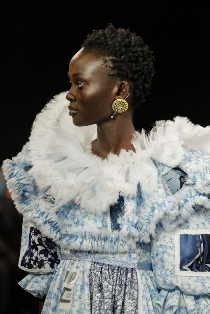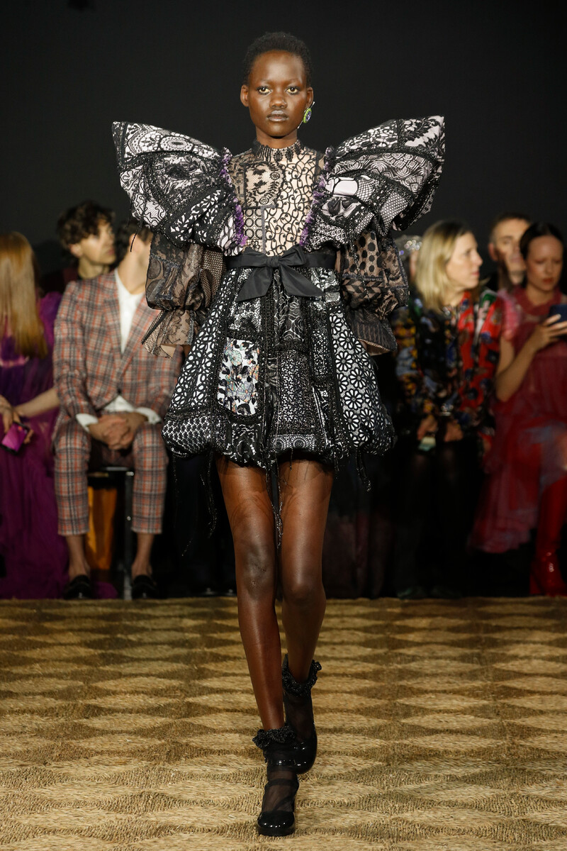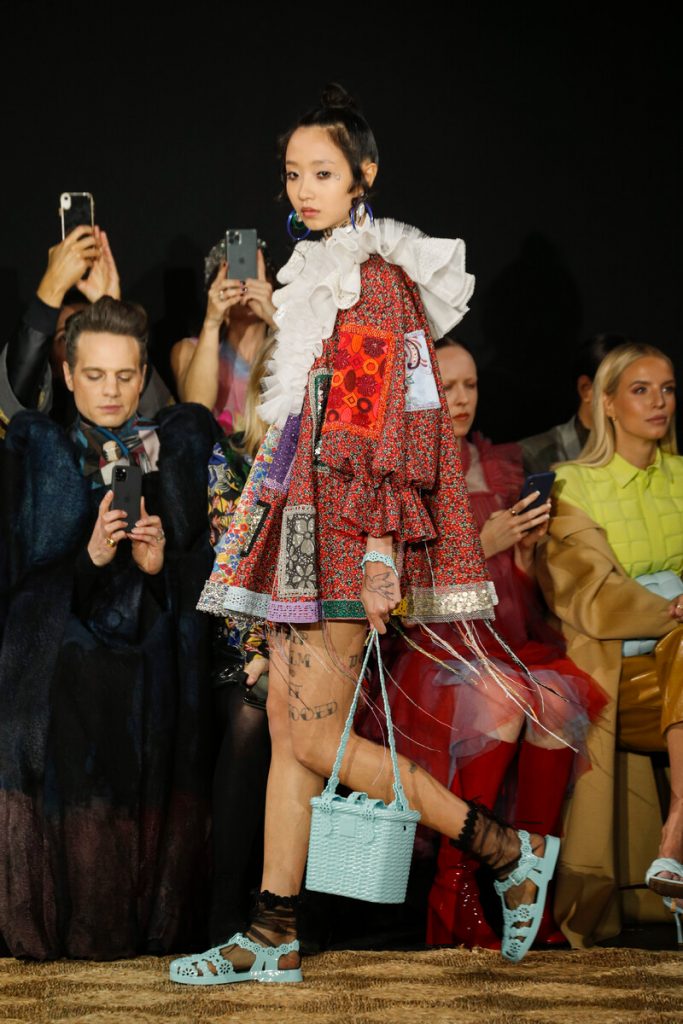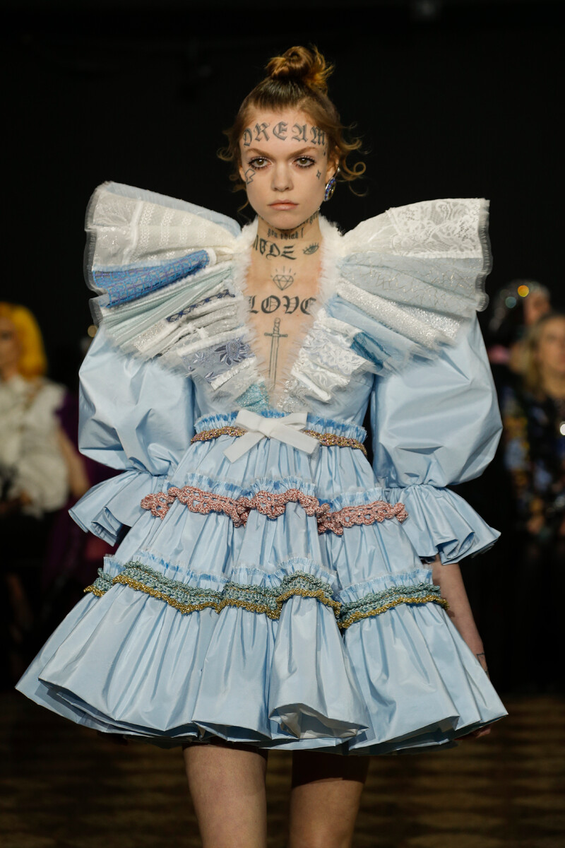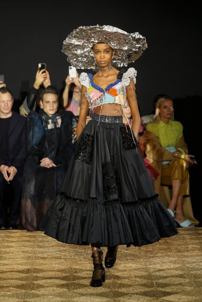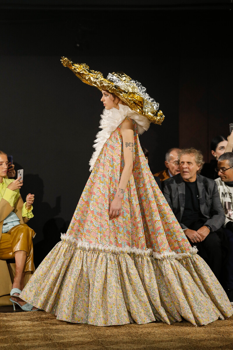 Inspired by the Holly Hobbie cartoon and Laura Ingalls Wilder’s Little House on the Prairie Viktor & Rolf came up with a patchwork like couture collection made of leftover materials.