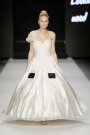 In between those items there were a few shiny evening dresses in shades like turquoise and ochre or gray and pink. And the last look of the collection was a bridal gown with the name Frank on it.