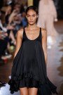 There’s no woman that doesn’t rely on head-to-toe black (except for Anna Wintour, who hates it). When you’re in hurry, have an important meeting or going on a date, black means you’re never out of style. It’s the colour of mystery and mortality and for many designers, this inky hue is their mainstay. It may not be the most original or daring choice for summer, but it’s definitely elegant. Like Christian Dior said in 1954: “You can wear black at any time. You can wear it at any age. You may wear it for almost any occasion.” So even when the temperatures rise it’s nice to play it safe and not stress about wether your bold summer colours and indie prints match. But sometimes our daily black uniform can use a creative and unexpected upgrade to make an chic and offbeat combo. Which means you can experiment with different fabrics (mesh!), silhouettes and lengths – there’s more than just a black dress- to see what works for you. Have a little fun and experiment, cause the runways are offering you many choices. You may not have an actual runway in front of you, but remember: the street is your runway. So for everyone who’s not sure how to give your black uniform a twist, here’s a hot list of 24 options that will do perfect in summer time (from the beaches to rooftop cocktail parties). Because it’s not always a bad thing to be on the black list.