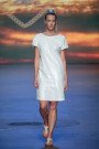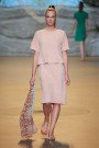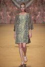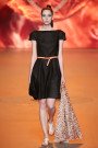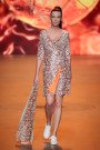 While her show on thursday’s opening night was based on earthy minerals, this one’s based on nature’s four elements: earth, water, fire and wind. The main differences were not so much in the designs itself, but mostly in the use of colour. When talking of nature’s treasures, you can’t skip its beautiful shades. Each element had it’s particular color scheme: Earth (soft pink, beige, green), water (white, blue, green, yellow), fire (red, orange, pink, black) and wind (black and white). Outfits consisted mainly out of dresses in all sorts: knee-lenght, ballet-like, sleeveless, covered with sequins or wrapped around the body. If you’re not a very dressy person, the elegant cinched or strapless jumpsuits might be a good option. Some looks were accessorised with animal printed scarves and clutches. No surprises there for the real Collignon fans (except for the sneakers), but just a rich collection both timeless and modern.