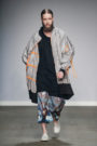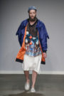 Any customer of Julliëtte Heijnen can be rest assured he’ll be looking as original as can be. It’s hard to even give the collection a general description, since all twelve menswear looks were so diverse. With the search for new silhouettes and interdisciplinary presentations as a starting point Heijnen’s male models sported XL T-shirts and sweaters with black linings, holographic prints (in a lovely color palette), raincoats, mesh tops, 7/8 pants and macramé tops worn as dresses. Accessories in the form of pompoms, twisted scarfs, a fishnet mask, double buns and a knitted beanie topped it off. Outfits and styling exercises you can hardly describe in words, you just need to see.