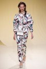 Shades of terracotto, olive green, off white, brown, black and one touch of yellow formed the lovely Moroccan-eske color palette at Sportmax. Within that mix of hues was a game of print and proportion going on. Stripes and other puzzling graphics (almost a real puzzle print towards the end) formed the outstanding factors on some of the asymmetrical dresses, the fluffy sweaters and the statement outerwear.