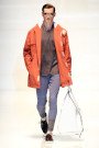 Silvia Venturini Fendi designed her ss14 menswear-collection with ‘Extreme Heat’ in mind. The result was a streamlined collection with crisp and slim suits and oversized outerwear. Some pockets and seams were trimmed with strips representing tape, which gave it a raw edge. Colors were deep and saturated, rust, ochre and indigo. Sometimes a bit faded, like bleached by the sun.