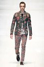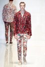 The collection: Hawaiian shirts, broken suits, satin-like blousons, and leisure shoes cloaked in rubber. The models looked as if they dressed themsleves in panic and just grabbed some clothes they could find. The colors were dark for a spring collection, as is noticed in more Milanese collections. Prada spiced up her palette with bold and lively prints of jungle foliage and pinup girls, even putting them onto leather briefcases and weekender.