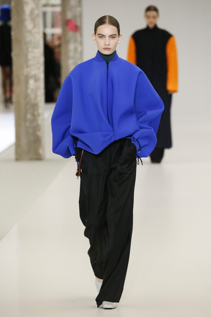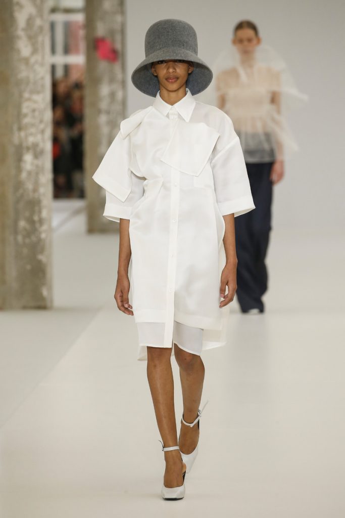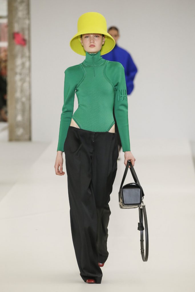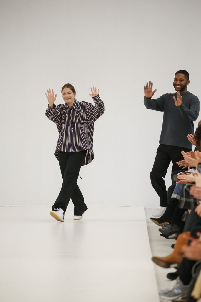 Nina Ricci’s Fw2019 was a debut collection for newly appointed designers Rushemy Botter and Lisi Herrebrugh. The couple (in work and life) with Dutch and Carribean roots were announced as the new creative forces behind the brand back in August. Botter and Herrebrugh have had their own menswear label (Botter) for some time, but now it was up to them to proof their skills in womenswear design. “They gave us a blank page,” said Herrebrugh at a preview. And so the young designers sent out a colourful, delicate and perfectly tailored collection. Tailored but relaxed, as the clothes moved subtly with every step of the way. Large felt hats made a strong statement, as did the oversized suit jackets, the white sheer cocktail dresses (made of bubble wrap), the coats with orange colored quilted sleeves, the dresses worn over wide legged trousers, the blue bomber jacket and the three voluminous parachute-silk finale dresses in primary colors. “The clothes have to be wearable. They can’t just be for fashionistas. My mother should be able to wear them – normal people deserve to feel comfortable and beautiful too”, Botter said. And the young designers surely succeeded on that mission. And though the international fashion press remains slightly skeptical and reserved, the duo is off to a wonderful start at the 87-year old fashion house. Congrats on a terrific debut collection!