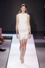 It was as if we were watching a show full of angels as the Giambattista Valli models were all dressed in white and light-colored designs. As simple as the designs were, as creative were the fabric choices. The show opened with a fur-like material, followed by zebra-printed satin, white lace and shiny, silver embroidered fabric.