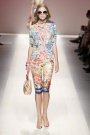 Blugirl goes innocent, with sweet florals in pretty pastels, where Fendi adds a touch of concealed drama in ladylike looks. Fabrics as well as shapes have pin up appeal; lovely lace tops, frilled aprons and pretty plisse skirts. Adding to the lust for print, as we noticed in New York, Milan shows Fifties inspired patterns in the loveliest of colour schemes.