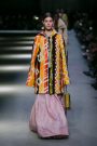 Fashion wise the show spoke of a good game of dressing up and the cross cultural styles we’ve seen at Gucci the last few seasons. Fringed tweed jackets, shiny twenties disco dresses, folklore overcoats and luxurious red velvet dresses. Styled off with Russian babushka headscarves, lace face masks, XL earrings and nerdy glasses. And of course it wouldn’t be a Gucci show without the abundance of Gucci logo’s (mixed with some NY Yankees and LA references). A collection that was already a hype before it hit the runway. Insta girls, be ready!